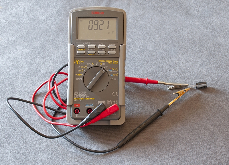Wyjszło nam na wyświetlaczu 921µF. Ani mniej, ani więcej. Spora odchyłka. No a nie uwzględniliśmy jeszcze dokładności!