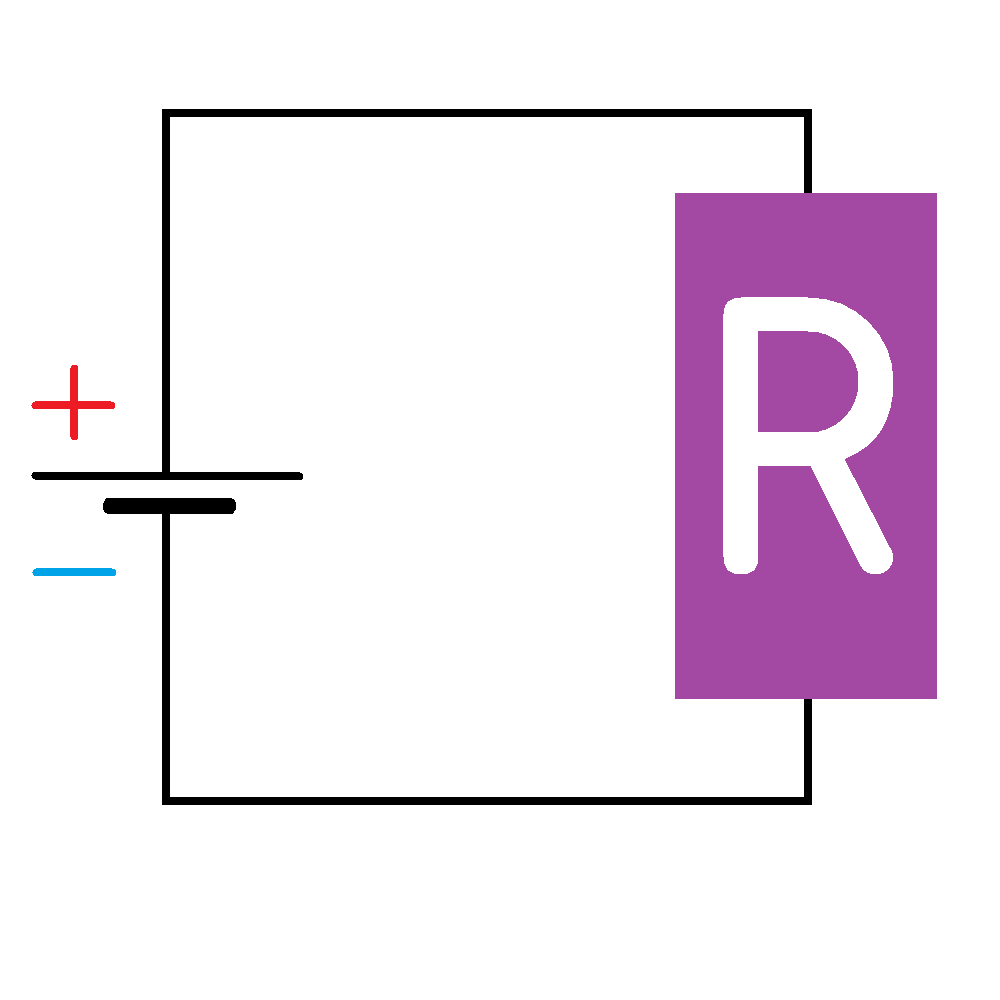Mamy źródło napięcia, do którego podłączony jest bezpośrednio rezystor. Ten rezystor symbolizuje nam opór elektryczny przewodnika. Tak dla ułatwienia rozumowania. Źródłem napięcia może być cokolwiek. Żeby było prościej zakładamy, że mamy do czynienia z jakimś źródłem napięcia stałego. Może to być bateria 9V, akumulator samochodowy 12V, przetwornica impulsowa DC/DC czy też zasilacz laboratoryjny. Cokolwiek co da nam prąd spod znaku DC. Nie mylić z AC/DC. Nie żebym coś do nich miał…