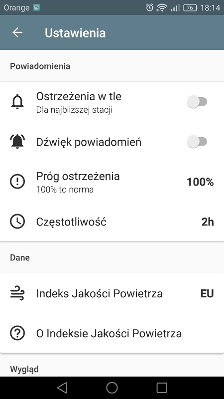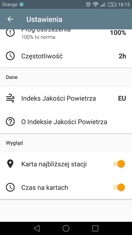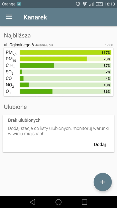 Pierwsza rzecz na jaką warto zwrócić uwagę to informacja o najbliższej stacji pomiarowej. Dzięki temu od razu możemy się zorientować czy smog będzie chciał się wedrzeć przez otwarte okno. Fajna sprawa